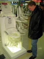 Erik studying a paper-less toilet.