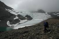Ulf på väg upp längs Kebnepakteglaciärens sidomorän