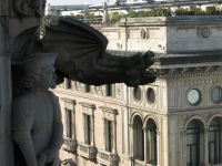 Gargoyles overlooking a street.
